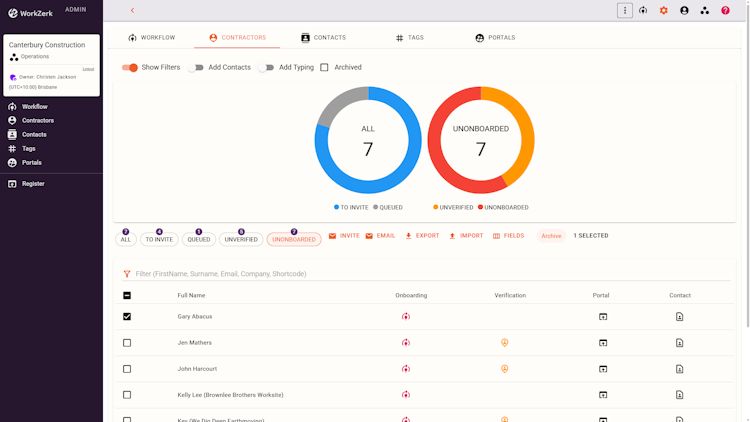 WorkZerk is a contractor management, onboarding and compliance automation software built for organisations in Australia and New Zealand. The platform streamlines onboarding through secure passwordless portals that allow contractors to complete sequential workflows with document uploads, form inputs, declarations and e-signatures. Portals can be accessed via personalised links or self-onboarding with QR codes issued at the point of arrival. The system removes the need for credentials or downloads while ensuring secure and auditable onboarding processes.