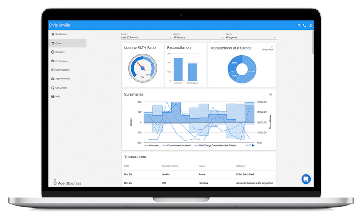 The application provides professionals with real-time analysis tools and helps generate reports and monitor agency production. Supervisors can track and reconcile commissions, review policy enrollment statuses, and identify issues. With AgentExpress, managers can track the number of contacts created and manage leads and organizational settings. The ACA enrollment platform enables single-site enrollment of complex household cases through Enhanced Direct Enrollment (EDE). EDE assists with ACA quoting, client management, and configuration.