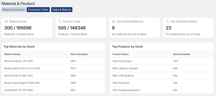 With Apprelix, businesses can manage the entire order lifecycle, from material procurement to production tracking, quality control, vendor management, sales and returns, and inventory management. Features like digital challans, order progress updates, role-based approvals, Uniware integration, and smart analytics give brands real-time visibility into their supply chain.