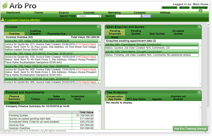 Arb Pro is a cloud-based CRM software designed specifically for tree surgeons and tree contractors to manage back office operations, quotes, sales processes, and more. Arb Pro provides a range of tree contractor office tools including an online calendar and dashboard, plus client data management, marketing, and tree mapping technology, which enables the creation of accurate site plans with exact tree locations. Users can also manage risk assessments, quotes and invoices from the same platform. As a cloud-based solution, Arb Pro gives users the flexibility to manage tree surgery business activities anytime, anywhere, from any internet-enabled device.