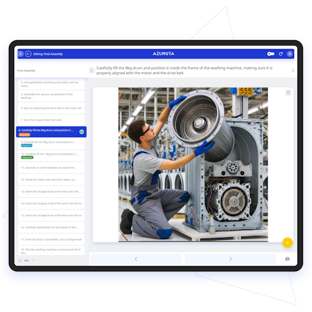 Through a comprehensive modular platform, Azumuta enables the creation and management of digital work instructions, in-line quality assurance, training material, skills matrix, audits planning, checklists, and much more.