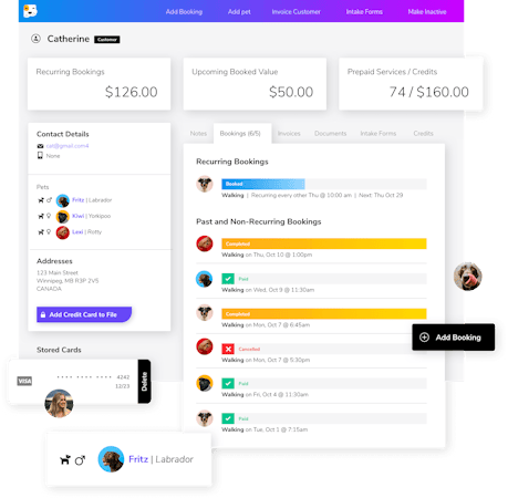 BusyPaws has been designed for modern pet care businesses to meet the needs and expectations of their clients. Delight your clients with a booking platform that matches the quality of service you offer to their pets. Our software has been shown to improve sales and booking conversion rates versus other pet care specific booking platforms by offering booking flows that match modern best practices used by innovators in other markets used for professional services. The BusyPaws experience extends to your staff enabling them to email, text, add notes, create bookings, generate invoices and payments, update client records, and much more. Quickly access information so that your staff spends less time engaged with screens and more engaged with your clients and their pets. Real-time reporting provides visibility into your business to capture changes in booking conversion rates, cash flow, revenues, client activity and more. Custom software development for back-end processes unique to your organization is also available and built in tandem with the existing BusyPaws platform and available to large organizations or franchises. Integrations with third-party software includes QuickBooks Online, Mailchimp, and a two-way sync with Google Calendar.