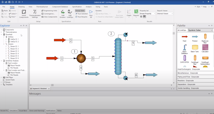 Chemcad is a chemical management software that helps businesses simulate processes, create flow diagrams, manage equipment sizing, generate charts, and more on a centralized platform. It allows chemical engineers to utilize the palette pane to access unit operations and symbols via a drag-and-drop interface.