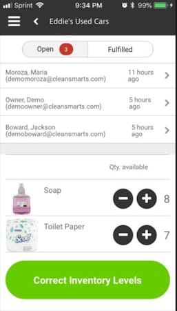 Clean Smarts is a janitorial software that helps cleaning businesses schedule resources to manage work orders and communicate with clients in multiple languages. The platform enables administrators to track inventory levels and automatically route stock requests to relevant personnel.