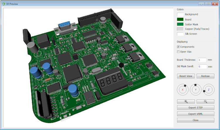 Administrators can utilize the placement tool to drag-and-drop multiple components by list, features, or other custom criteria to define the final layout of the board. The 3D PCB preview functionality lets users view a 3D model of the manufactured circuit board, rotate it on axis, zoom in or out, and customize their colors. DipTrace also supports integration with numerous manufacturing tools and third-party applications like Eagle, OrCAD, Altium, PADS, KiCad, and more.