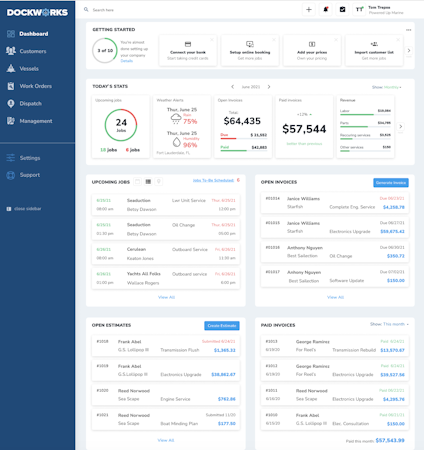 DockWorks is the only all-in-one operations platform that enables marine service professionals to manage and optimize businesses. It helps teams simplify the process of managing technicians, maintaining customer and vessel history, work orders, and payments so marine service providers can focus on growth.