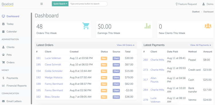 Doxford is a pet sitting software, which enables pet training, daycare, and boarding centers to manage appointments, invoices, clients, online payments, and more on a centralized platform. Catteries can create orders and invoices, handle pets' check-in and out, maintain a record of activities using images or notes and view daily, weekly, or monthly appointments on a calendar.