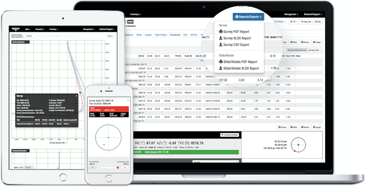 Directional and survey visualization enables directional drillers to track surveys, slides, and rotates while visualizing current, planned, projected, and anti-collision well paths. Real-time visualization shows actual drilling progression side-by-side with planned and anti-collision paths. Drakewell automatically tracks job performance data, enabling users to generate reports that display the company’s performance in specific areas.