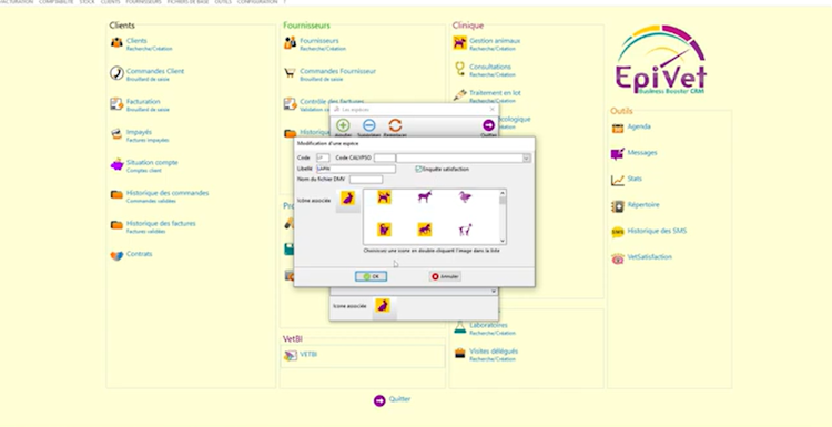 Epivet is a veterinary management software designed for practices of canine, equine, and rural veterinarians that helps manage administrative tasks. It offers a secure database with automatic backup functionality. It assists with regulatory compliance management, including Calypso declarations, NFE law, synchronization with the IFCE directory, secure prescriptions, and electronic invoicing.