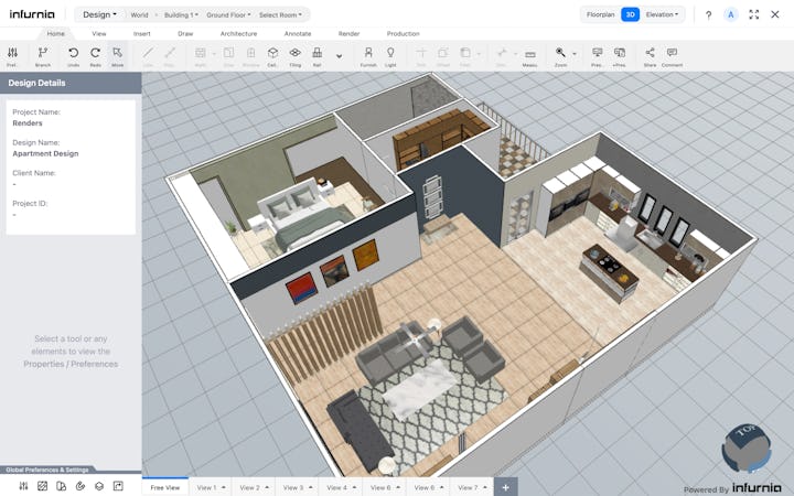 Infurnia is an architecture design software that helps designers create detailed 2D and 3D plans. The platform enables administrators to build customizable floor plans and elevation designs.