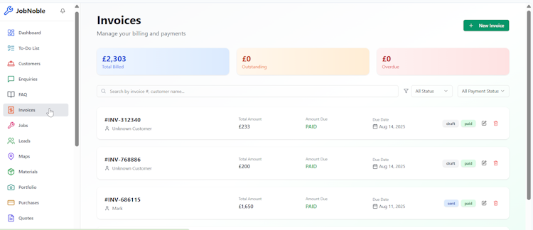 JobNoble is a comprehensive job management platform tailored for trade businesses. It enables professionals in plumbing, electrical work, landscaping, painting, pest control, cleaning services, plastering, HVAC, and joinery to manage jobs, clients, and payments through a single system. Developed by tradespeople for tradespeople, the platform aligns with the operational workflows of small and medium sized service enterprises across the United Kingdom.