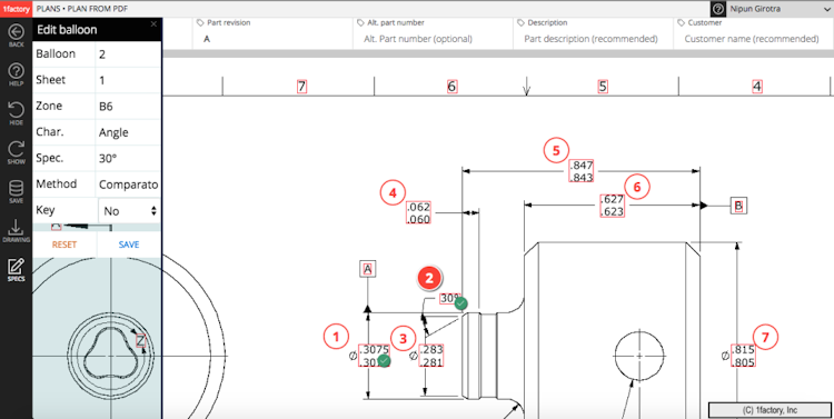 1factory is a quality management tool that helps streamline quality control processes in precision-oriented industries such as aerospace, automotive, medical devices, machining, and semiconductors. The software offers tools to automate and streamline workflows, including first article inspection (FAI), quality control planning, and real-time monitoring of production quality across receiving, in-process, and final inspections.