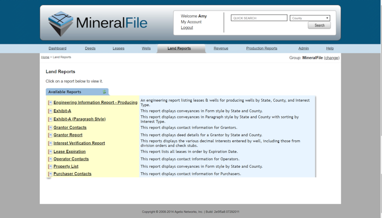 MineralFile is a cloud-based mineral and royalty management solution designed to help businesses manage documentation, investment validation, royalty income, expenses, mineral assets, acquisition and information sharing. It allows users to create multiple reports such as land, revenue, engineering, operators, production volume and more.
