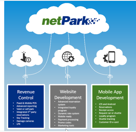 netPark is a cloud-based parking management solution designed to help businesses streamline self-parking or valet operations across airports, garages, hospitals, restaurants, and other facilities. The application allows stakeholders to accept payments through various methods including debit or credit cards and automated clearing house (ACH) transfer as well as support license plate recognition (LPR) and lost ticket processing.
