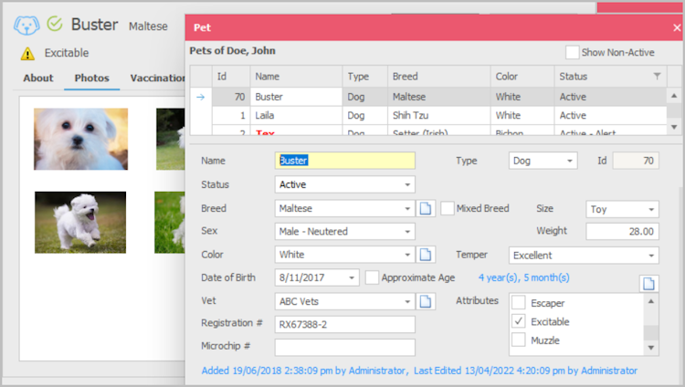 With PetLinx, users can maintain detailed records of clients, pets, bookings and appointments, invoices, payments, business contacts, employees, and retail products. Users can track pets’ registration and microchip numbers, vaccination records, weights, behavioral attributes, and more. Information can be found using any combination of search criteria, such as client name, pet name, and phone number. Letters and invoices can be created with custom branding, and emails or text messages can be sent out in bulk to clients. Users can also generate a range of standard reports, and customize these as necessary.