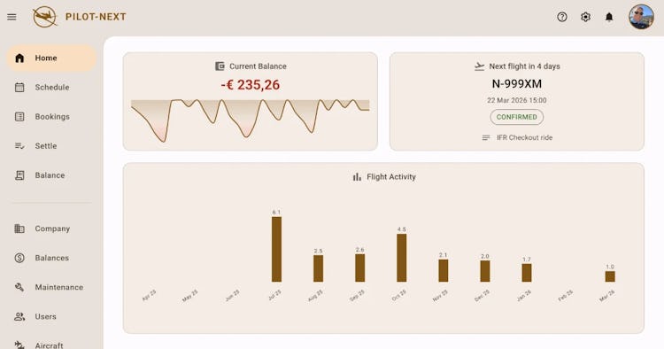 Pilot-Next is aircraft partnership and flying club management software designed to streamline operations for aircraft co-owners, flying partnerships and aviation clubs of varying sizes. The platform serves as a comprehensive solution for managing shared aircraft operations and eliminates reliance on spreadsheets, group messaging applications and manual administrative processes. The software accommodates individual aircraft owners, small partnerships with multiple co-owners, flying clubs with numerous members and aircraft rental businesses seeking precise financial tracking and operational oversight.
