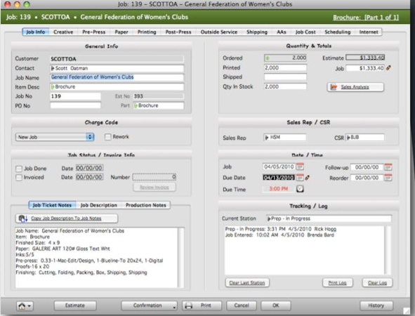 Print estimating and management software