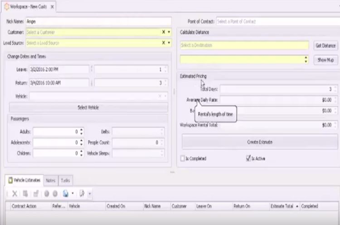 It has Task Tracking used to schedule reminders for employees to call back a prospective renter, inform service of parts that need ordering, assign task to other employees or managers and task a vehicle for specific maintenance.