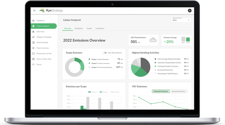 RyeStrategy helps small and mid-sized businesses measure, reduce, and report their carbon emissions without the complexity. Our carbon management software streamlines GHG data collection, calculates your company’s footprint, and generates reports aligned with global standards like the GHG Protocol.