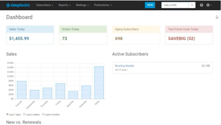 SimpleCirc is a subscription management platform for newspaper and magazine publishers which offers tools for managing subscribers, making online sales, uploading digital content, reporting on key metrics, automating renewals, validating subscriber addresses, managing data, and more. Designed specifically for small publishing businesses, SimpleCirc offers a range of tools for managing and growing publications from one central platform.