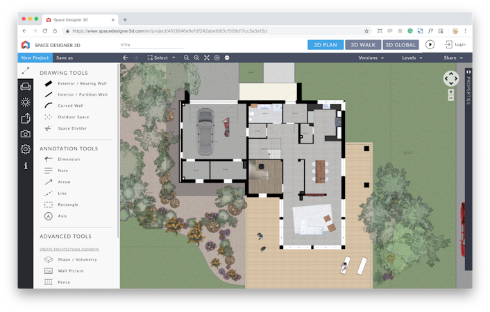 Space Designer 3D also offers additional features such as annotation tools, group selection, background upload, multiple textures, and items movement in 3D mode. The application hosts all projects in the cloud and requires no plugin installation for access across any device.