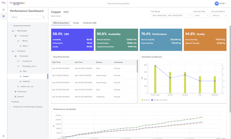 Symphony IndustrialAI Digital Manufacturing helps operations managers digitize, manage and analyze manufacturing operations, MOM 360 is an enterprise MES/MOM solution comprised of an integration platform that services a suite of pre-built and customizable applications to improve the efficiency of shop floor and plant operations.