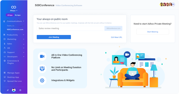 500Conference is an AI-powered video conferencing platform that makes it easier to connect and work with an unlimited number of participants.