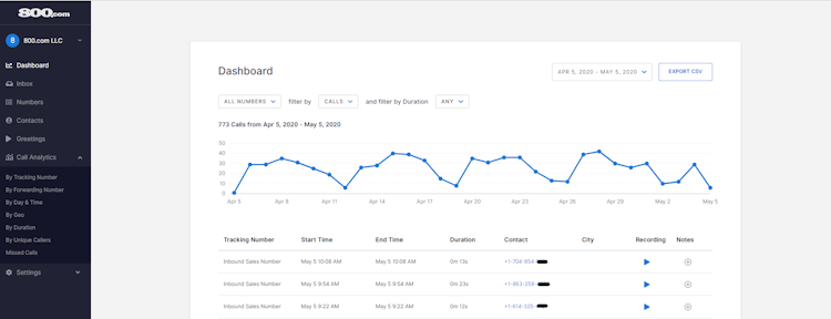 800.com is a call tracking program offering key features such as Caller ID, call routing, and alerts/notifications, among others.