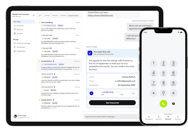 The platform offers voicemail features such as message transcription, summaries, and call sorting to help users prioritize messages. It facilitates integration with various third-party platforms, allowing users to sync contacts, log calls, and make calls directly from their CRM. The platform also provides a shared call inbox for teams to collaborate on customer communications.