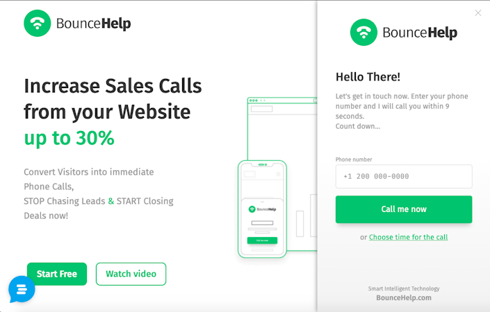 Install BounceHelp to decrease website bounce rate and increase purchase conversion. Convert website visitors into immediate phone calls!