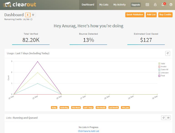 Email Verification: With millions of emails verified each day Clearout helps in removing invalid, spam traps, typos, temporary, gibberish or risky emails.