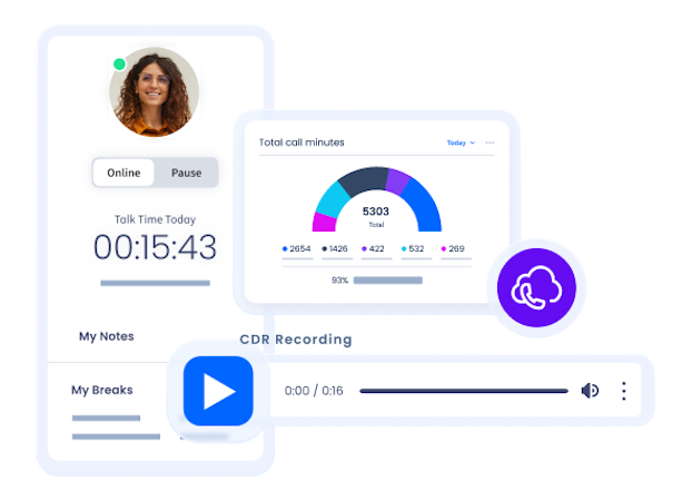 Real-Time Dashboards: Stay on top of operations with live visibility into agent and queue performance. Managers can respond in the moment, while agents track their own activity and progress towards targets. .