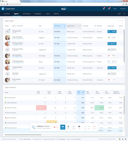 Five9 is a contact center and call centre solution powered by artificial intelligence. The cloud-based solution provides omni-channel tools including inbound and outbound call management, predictive dialer, progressive dialer, chat, social customer service, automatic call distribution (ACD) and more Five9 is a cloud contact center solution, which brings the power of Practical AI to thousands of call centers worldwide. Since 2001, Five9 has helped customers create great omnichannel customer experiences. Triple agent talk time with smart dialers that automatically skip no-answers and busy signals to ensure the next prospect is available when the next agent is ready. Use intelligent routing to get calls to the right agents and derive customer intent data to predict the best next steps for agents. Provide intuitive self-service options with Five9's IVR. Five9 brings Practical AI to contact centers to increase agents' effectiveness and efficiency, and create great customer experiences every time on every channel - phone, chat, mobile, email, social and more. Use intelligent routing to ensure the call gets to the right agent and use customer intent data to provide agents with the best next steps before they even pick up the phone. Offer customers intuitive self-service options for common injuries with an easy to set up IVR so that agents can focus on high-value interactions. Improve agent talk time with four different dialing modes that automatically skip no-answers and busy signals so agents can spend more time talking to live prospects. Visually dynamic dashboards offer real-time and historic reporting and analytics so users are always on top of their contact center's performance.
