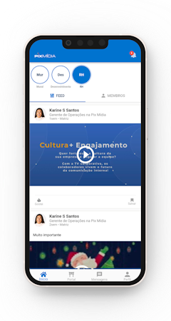 ImidiaApp is an internal communication mobile application that helps businesses communicate with employees inside and outside the company. With the built-in Pix Midia's internal communication mobile application administrators can send personalized, relevant and urgent communications directly to employees’ cell phones.