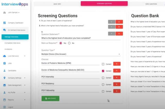 InterviewOpps is a web conferencing software designed to help HR professionals screen, assess, and interview candidates on a centralized platform. The white-label solution enables managers to automatically filter and shortlist qualified job seekers based on answers to multiple-choice questionnaires.