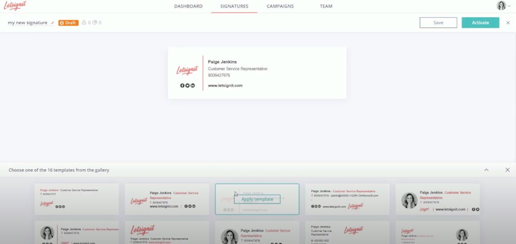 Email signature software with customizable templates