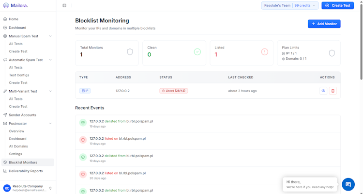 Email deliverability and inbox monitoring