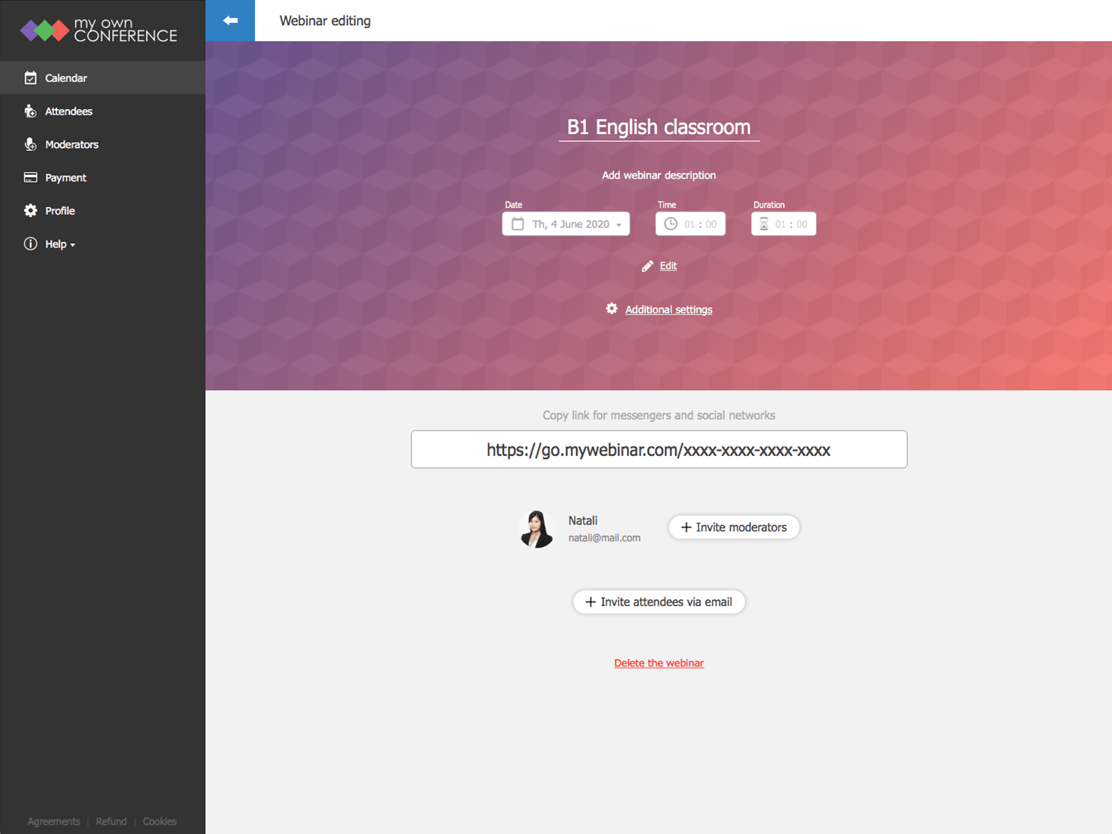 MyOwnConference has the following pricing plans: