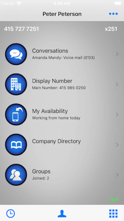 • Access live company directory that includes active extensions