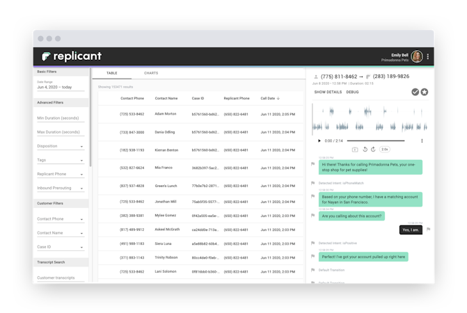 • Replicant Voice models are pre-trained on customer service data, requiring less retraining to reach higher levels of inference accuracy. Once live, Replicant Voice scales to handling thousands of calls in production.