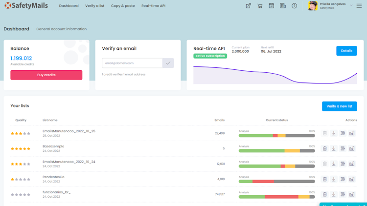 SafetyMails is an email verification tool, which helps businesses identify, validate, and remove invalid, disposable, and spam email addresses. The platform enables users to upload email lists into the system, generate reports, and download verified mailing lists using targeted filters and dashboards.
