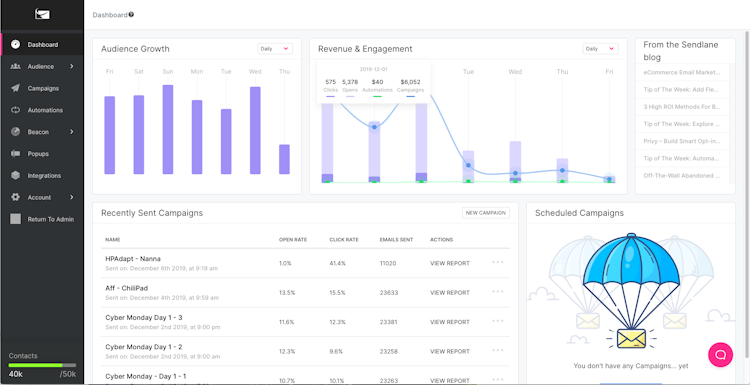 Sendlane’s user interface