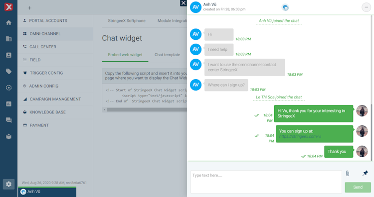 StringeeX is an omni-channel contact center software that helps businesses with ticket management, live chat, customer contact management, and Facebook fanpage management. Teams can maintain a centralized database of customer contact information, including contact, landing page, and events for personalized support.