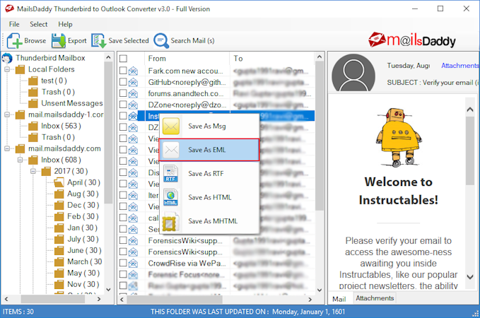 Users can install Thunderbird Outlook Converter on different Windows OS and can make a hassle-free conversion in PST, EML, MSG, HTML, MHTML, and RTF formats from Thunderbird. The software migrates multiple emails from Thunderbird to PST format without any changes.