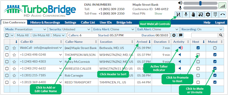 TurboBridge is an audio and web conferencing platform that provides businesses with a convenient way to conduct audio meetings, webinars, and online classes. TurboBridge proprietary technology allows for the creation of virtual conference rooms in which users can join via personal computers or mobile devices. By using the interactive features of these virtual rooms, participants are able to more effectively communicate during audio conferences, maximizing efficiency and minimizing travel costs.