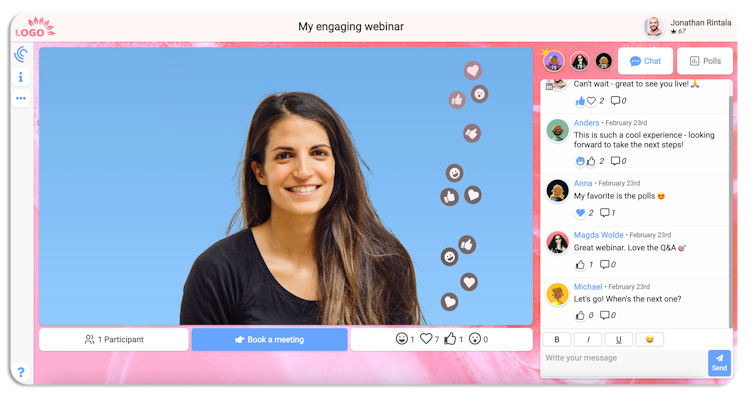 - Univid hosts engaging webinars with live reactions, chat, Q&A, polls, CTA-buttons, and more.