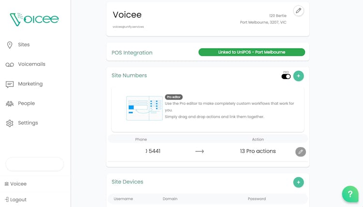 Voicee is a cloud-based softphone platform that integrates with phone numbers to provide users with caller ID and helps manage caller experiences and customer list processes. The tool also integrates with POS systems that enables administrators to maintain customer phone numbers, optimizing staff time and labor costs.