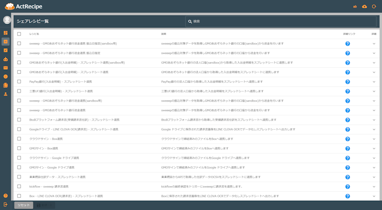 ActRecipe is an iPaaS that allows you to integrate data from SaaS and FinTech services and strengthen internal controls by simply selecting recipes. Consultants create the best recipes, so users do not need to learn tools or share advanced IT knowledge.