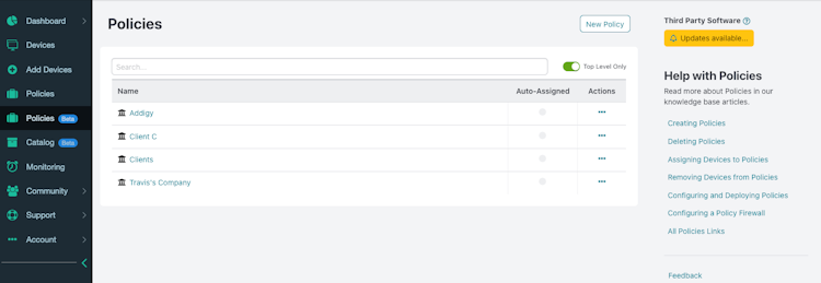 The solution comes with multi-tenant tools that enable supervisors to track individual assets distributed across various locations and networks. Supervisors can create date-stamped logs for devices and record details such as last account activity, agent version, online/offline status, and more. Addigy includes a policy module, which lets administrators maintain a group of devices and facilitate quick searches for users by assigning them to policy destinations. Moreover, supervisors can create profiles to deploy different settings and preferences as well as add respective user details.