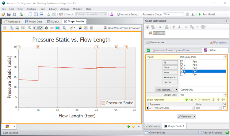 Arrow is a simulation tool used to calculate pressure drop and flow distribution in gas piping and ducting systems. The software simulates individual components and their interaction, including the effects of heat transfer, real gases, and choked flow. It integrates equipment characteristics, analysis, and output with the system's schematic representation, allowing users to compare the performance of new designs and ensure all design requirements are met.